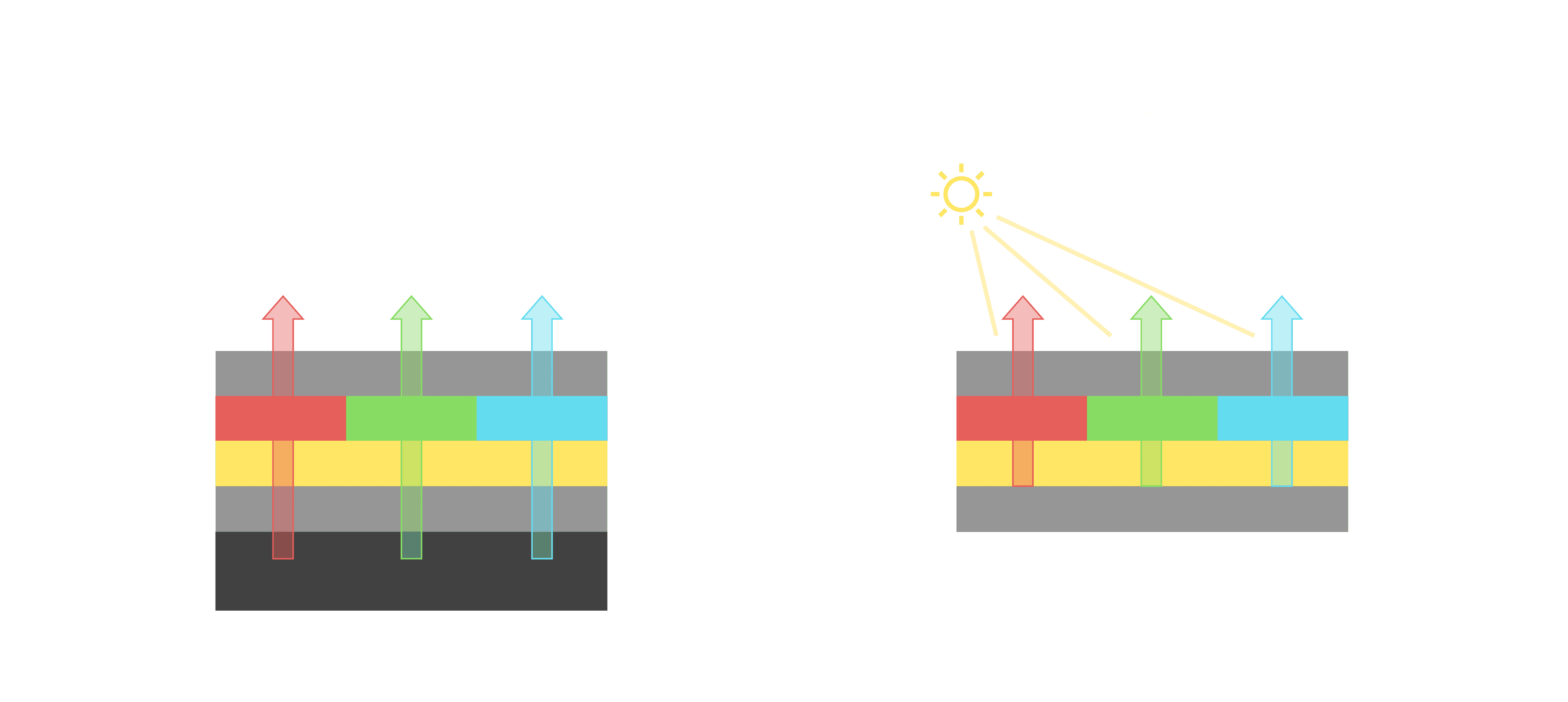 与传统需搭配背光单元的液晶显示相比,,,,反射式液晶技术不仅更省电、、、更轻薄,,,且即便在艳阳下仍能清晰显示。。。此外,,少了背光单元,,,也大幅降低了 LED 蓝光伤害眼睛的疑虑。。。。