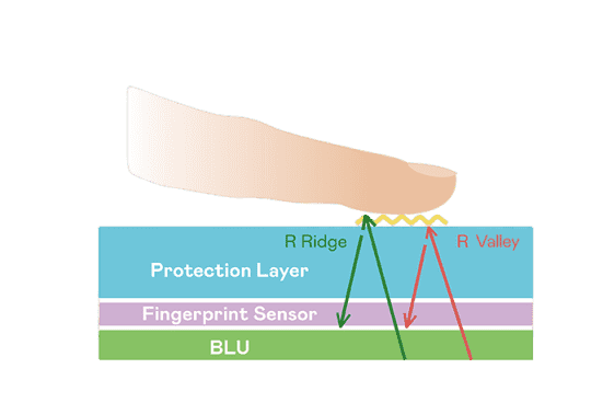 TFT 指纹扫描感测技术利用薄膜电晶体 (TFT) 当作光感测元件,,藉由非晶硅 (a-Si) 与低温多晶硅(LTPS)既有光电转换特性对不同波段光源进行吸收,,使感测 IC 读取阵列感测元件的光漏电差异,,,转换成数位灰阶影像。。。。